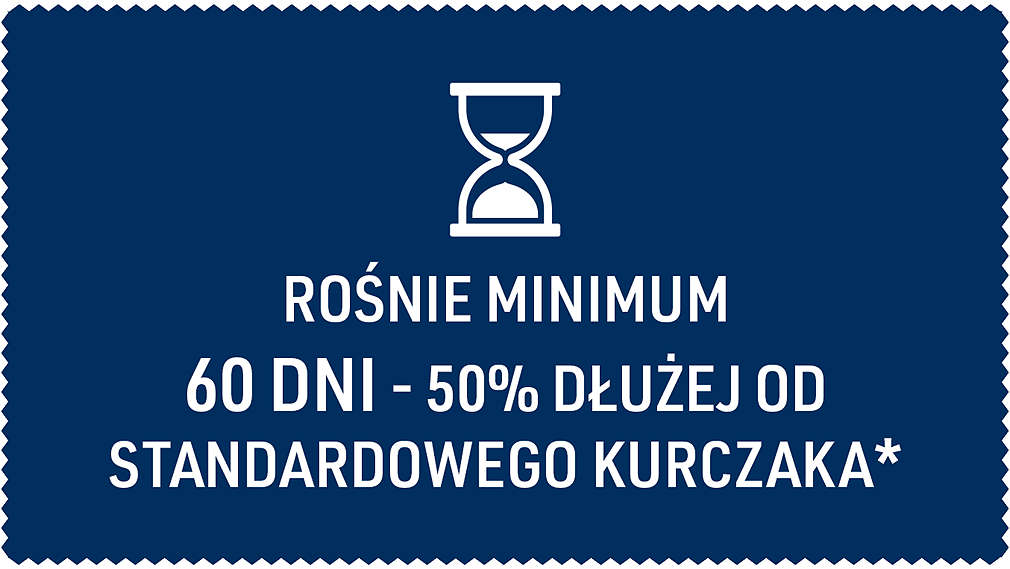 * W odniesieniu do długości chowu standardowego kurczaka, którego czas chowu wynosi 40 dni.