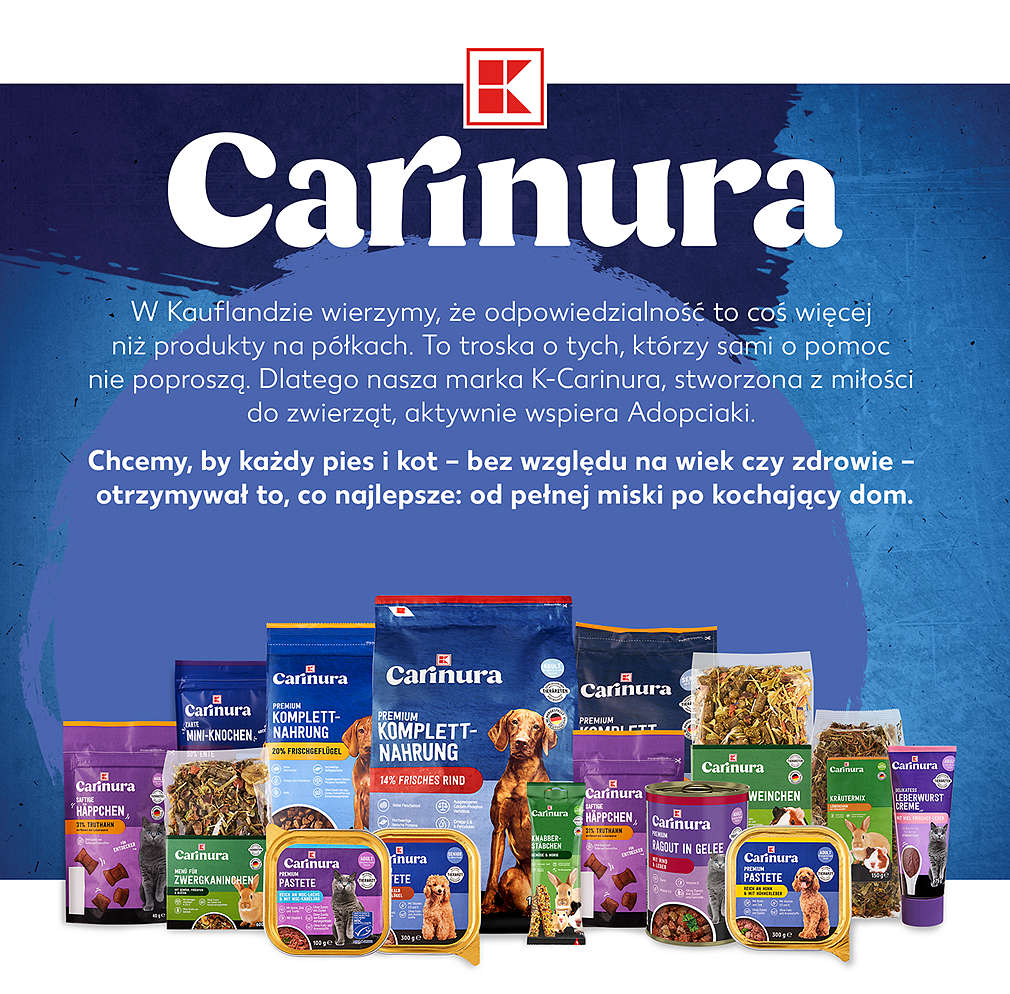 Wspólnie z TOZ dbamy o to, czego schroniska potrzebują najbardziej - funduszy na leczenie. Dlatego, 5% obrotu ze sprzedaży produktów K-Carinura przekazujemy na diagnostykę i zabiegi ratujące życie podopiecznych TOZ. Wybierając zdrową karmę dla swojego pupila, realnie finansujesz powrót do zdrowia zwierzaków, które wciąż czekają na dom. Jeden produkt w Twoim koszyku to szansa na nowe życie.