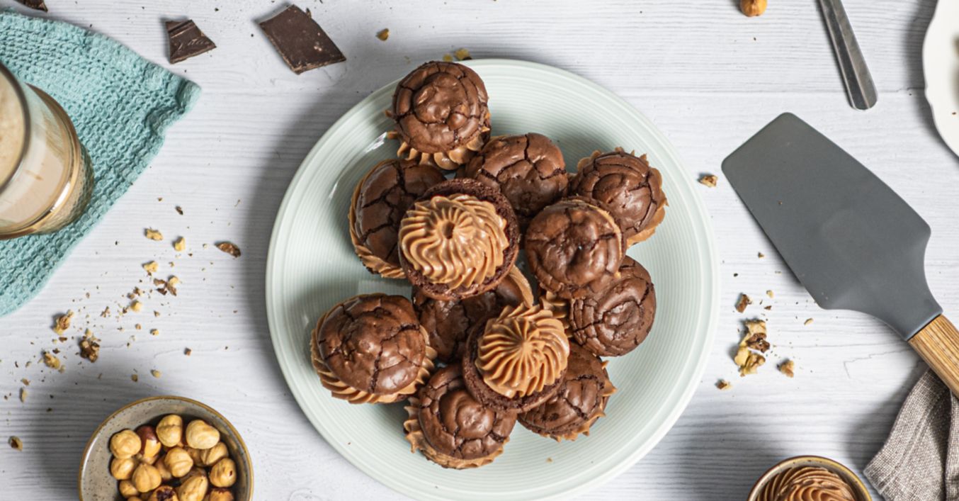 Czekoladowe ciasteczka „brownie” z musem orzechowym