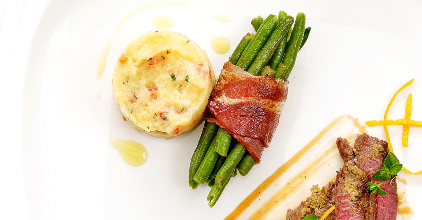 Jagnięcina z polentą paprykową i fasolką