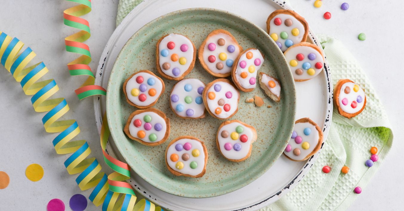 Po 2 łyżeczki ciasta nakładać w odpowiednich odstępach na blachę do pieczenia wyłożoną papierem do pieczenia i piec w piekarniku nagrzanym do temp. 180°C (piekarnik gazowy: poziom 3, piekarnik z termoobiegiem 160 °C) przez 12-15 minut na kolor złotobrązowy.