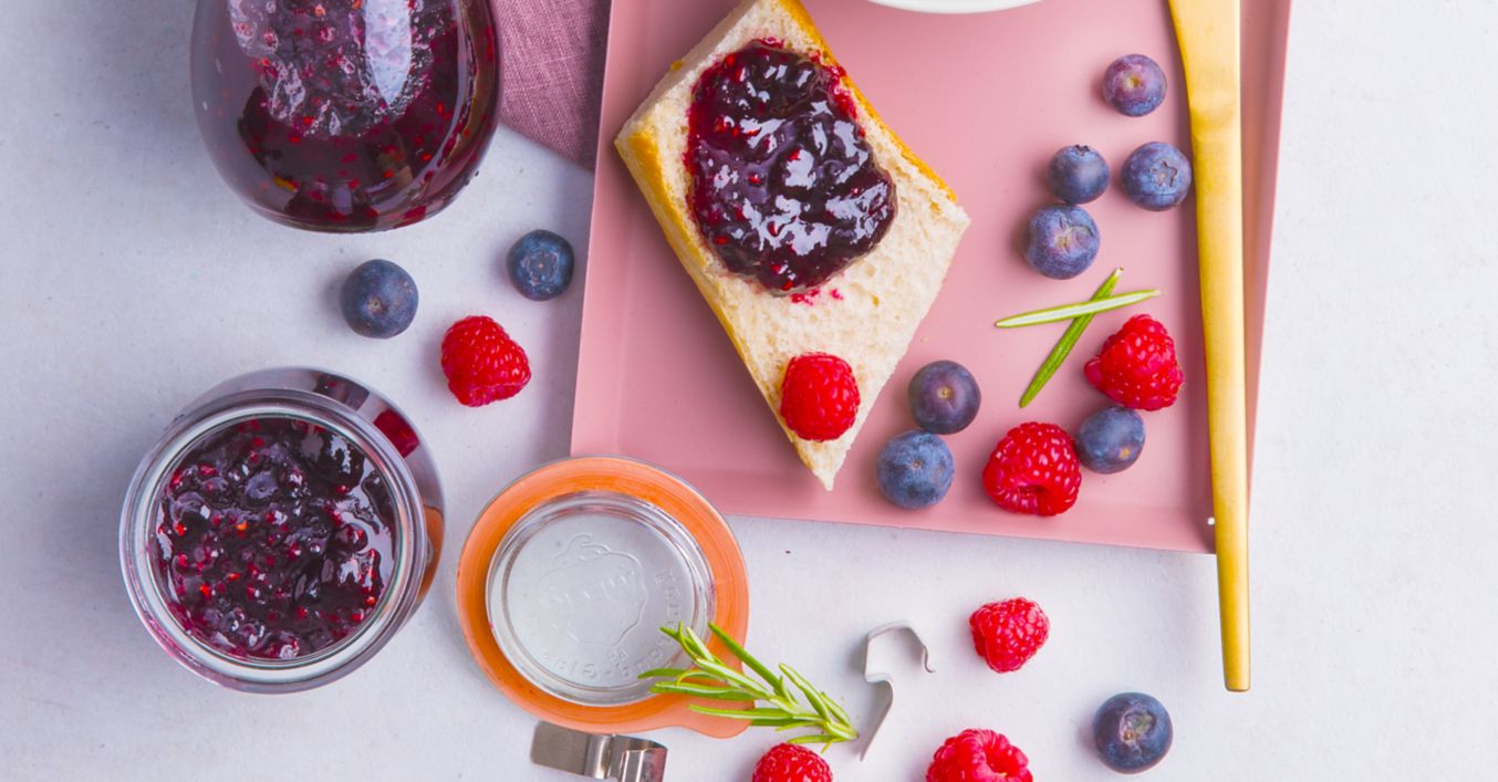 Maliny i borówki przebrać, umyć, osuszyć. Rozmaryn umyć i osuszyć. Tak przygotowane składniki wymieszać z sokiem z cytryny i cukrem żelującym.