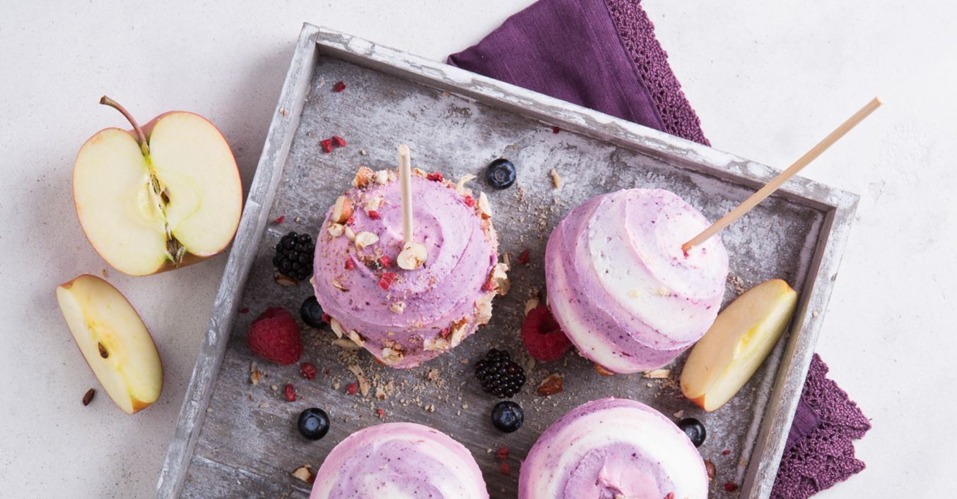 Jabłka umyć, osuszyć, ew. obrać ze skórki i nabić na drewniane patyczki do szaszłyków. Każdą grupę owoców jagodowych zmiksować osobno.