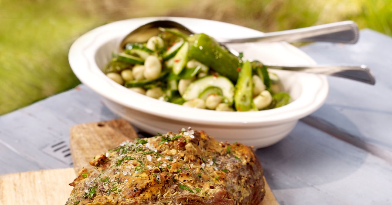 Pieczeń musztardowo-ziołowa z zieloną sałatką