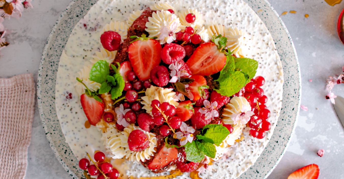 Sernik na zimno z chia i świeżymi owocami