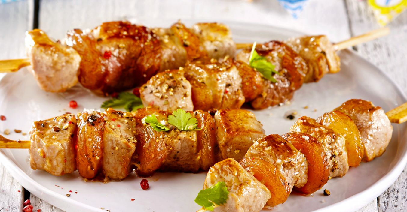 Szaszłyki z polędwiczek wieprzowych z morelami