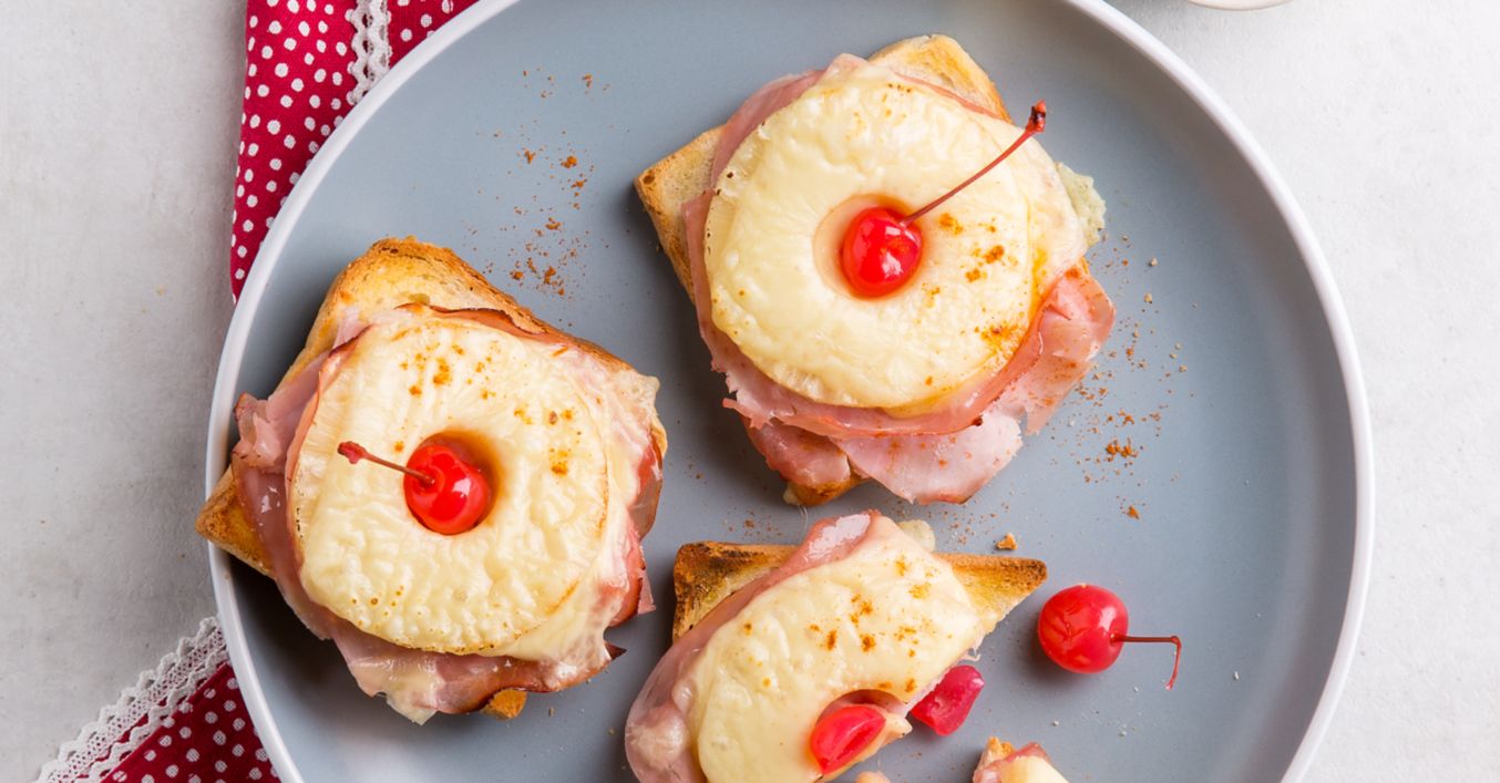 Chleb opiec w tosterze, posmarować masłem, a następnie ułożyć na blasze wyłożonej papierem do pieczenia. Na każdą kromkę nakładać najpierw plastry szynki, potem ananasa, a następnie sera.